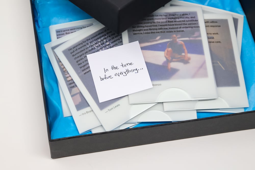 Full set includes all seventeen images, bonus eighteenth image with embedded augmented reality video about the project and a mini easel to display the polaroid of your choice on rotation. Packaged in presentation gift box